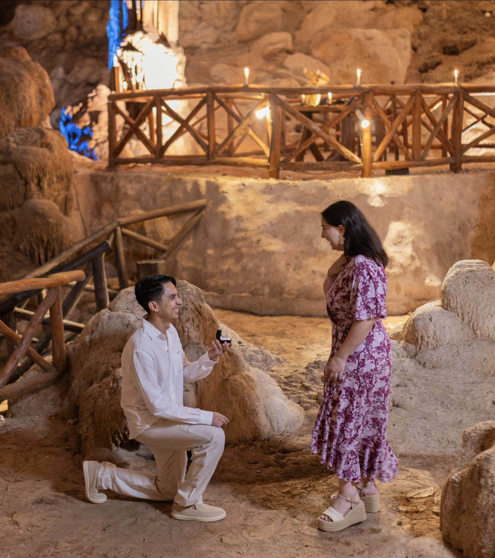 • Magia natural: un cenote subterráneo iluminado con velas y luces artísticas.
