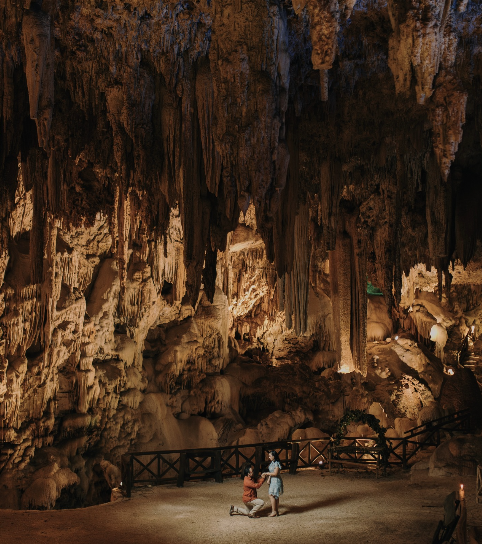 Porque uno no suele pensar en pedir matrimonio, celebrar un aniversario o tener una escapada romántica a 20 metros bajo tierra, rodeado de estalactitas y velas encendidas dentro de un cenote museo sagrado.